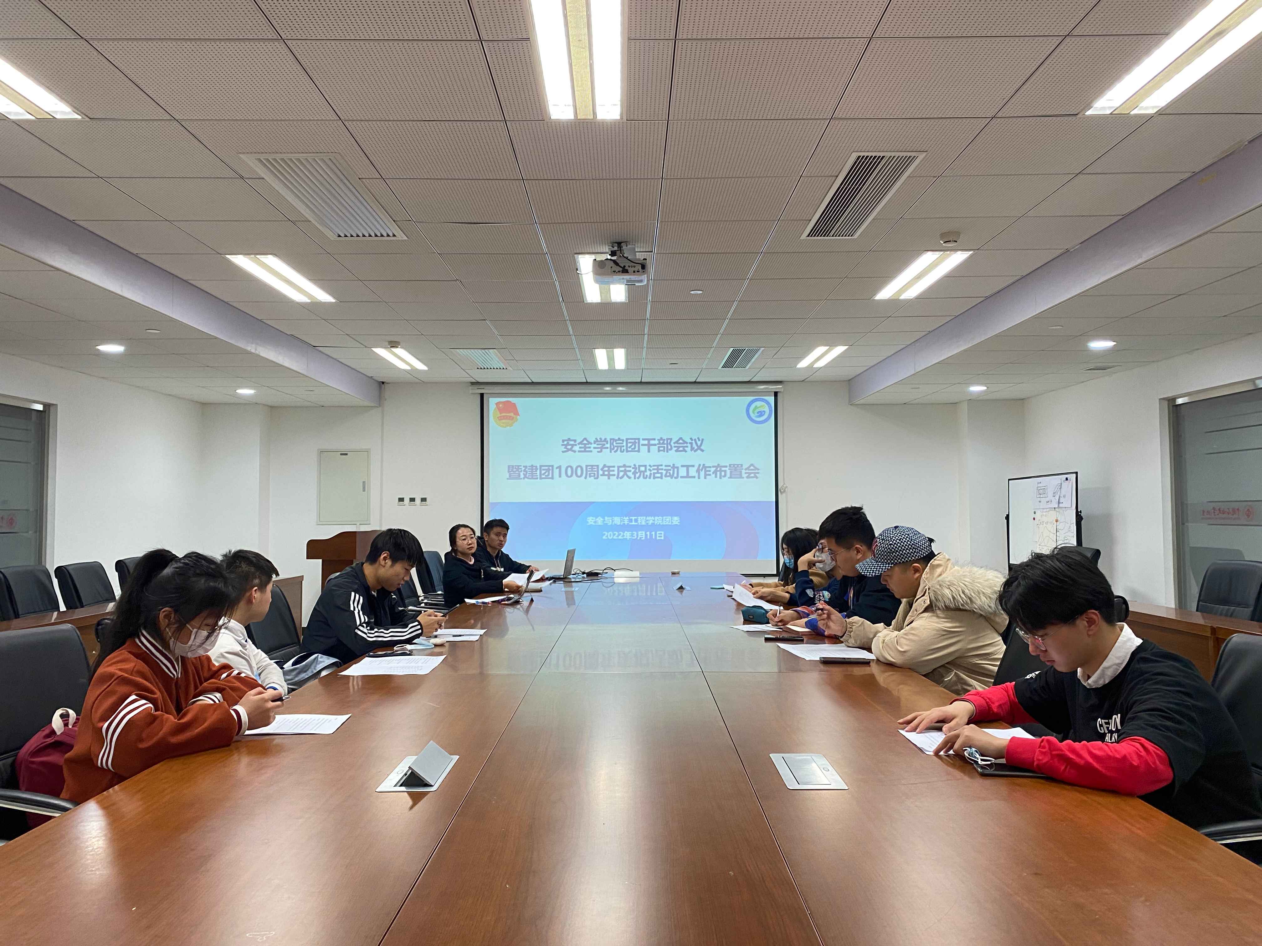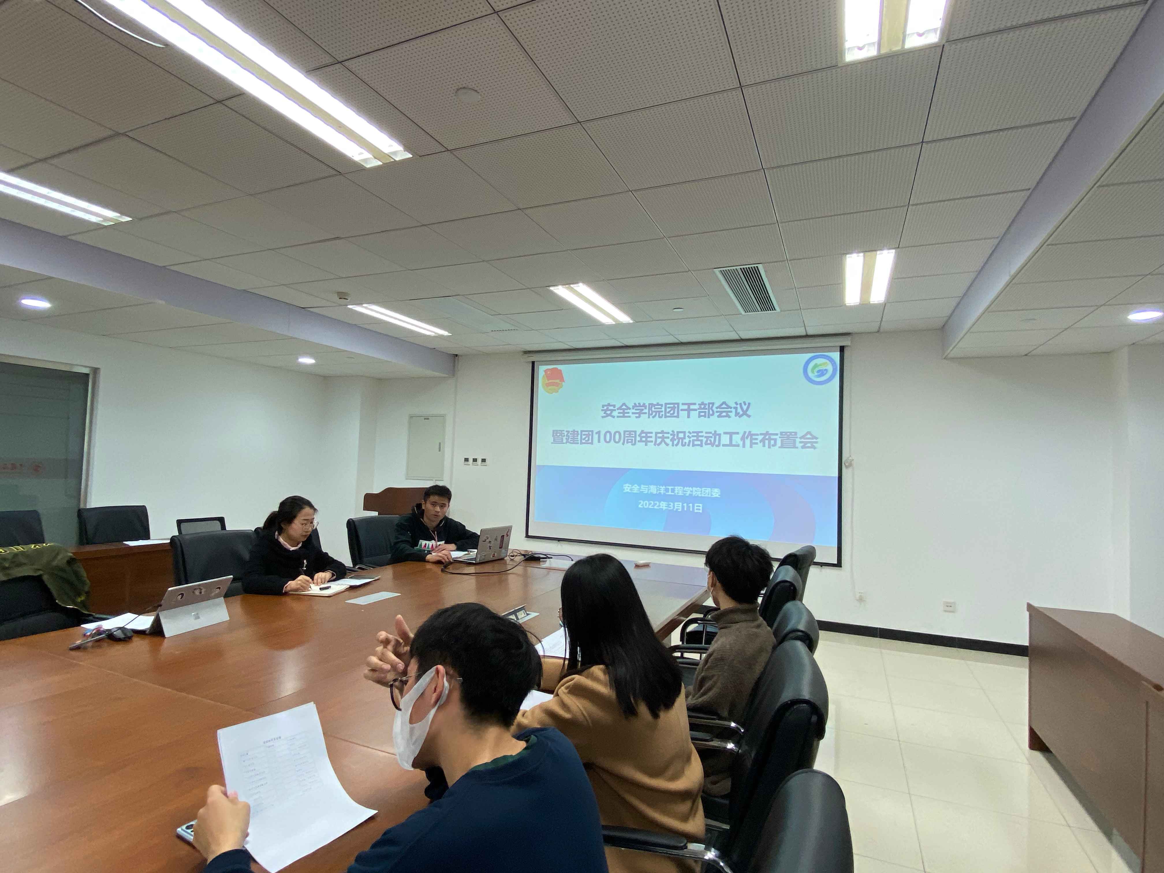 2022年是党的二十大召开之年,是共青团建团100周年。3月11日,安全学院团委在主楼A520会议室召开建团百年系列活动暨2022年工作布置会。安全学院团委书记方百会、辅导员于晓鹏、赵思源及所有社团骨干出席会议。