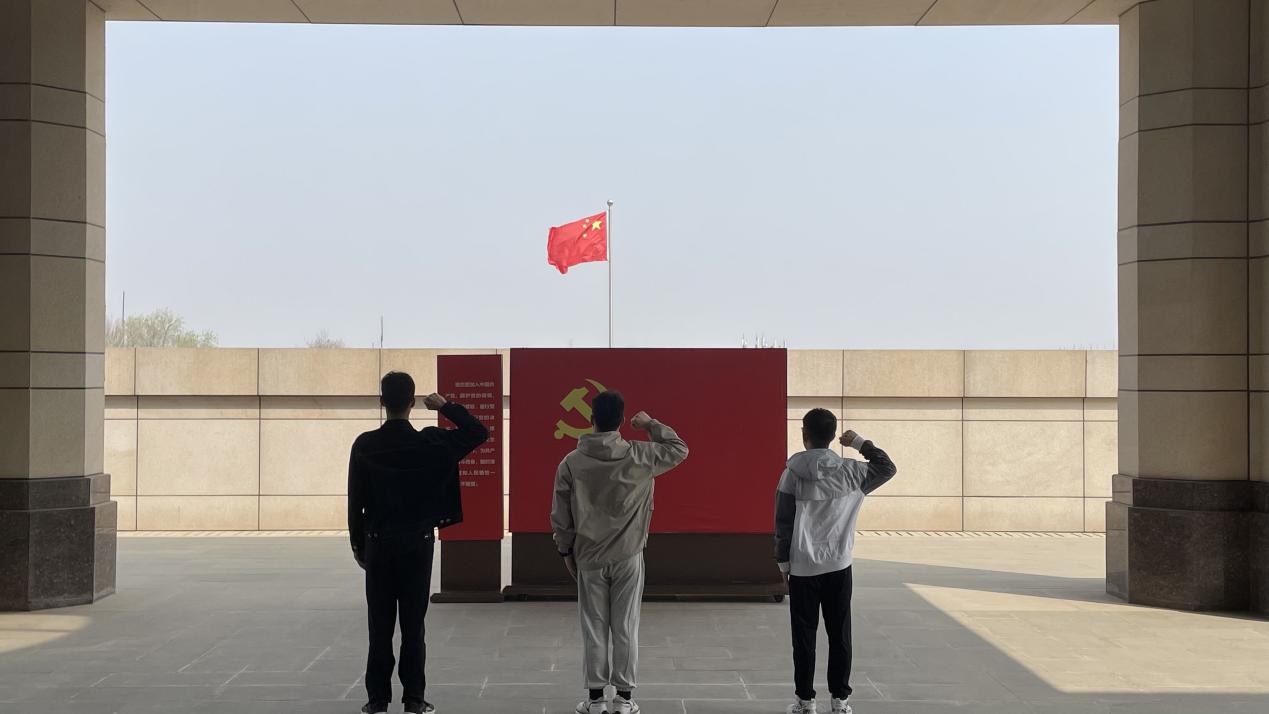 参观过程中,安全本21级党支部三名预备党员面对鲜红的党旗,一起高举右拳,重温了入党誓词。