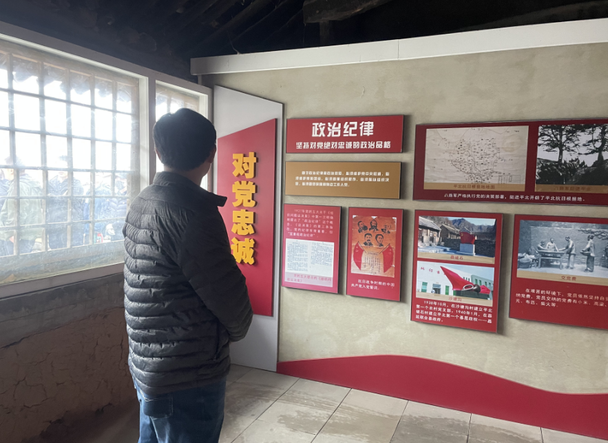 昌延联合县政府是抗日战争时期平北地区首个抗日民主政权和重要革命根据地,为平北地区的抗日战争作出了重大贡献。行走在霹破石村的青石板路上,看着沿街墙面上的革命标语,老师们仿佛回到了那个激情澎湃的革命年代。县政府大院旧址展室详细记录了昌延联合政府成立的背景和革命事迹。红廉展室里的一幅幅展板以真实事迹对党的六大纪律进行了生动阐释。老师们边走边看、边学边思,深受启发。