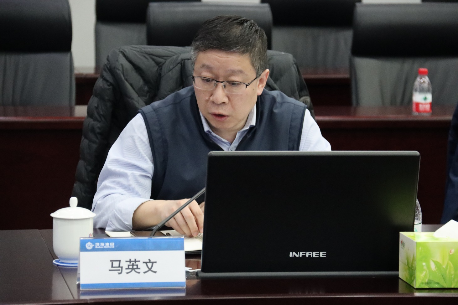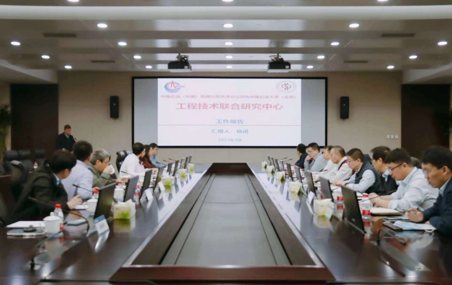 杨进就校企工程技术联合研究中心建设做工作报告,他表示,近年来校企工程技术联合研究中心的建立为双方在科学研究、人才培养、成果转化等方面的合作提供了重要平台,已逐渐成为校企“产学研用”深度融合的典范。他强调,中石大安全与海洋工程学院将以渤海油田钻井新问题为导向,完善党建引领下的双方人才共育与输送机制,以具备实操性的理论研究成果大力支持渤海深层油气“安全优快”作业。