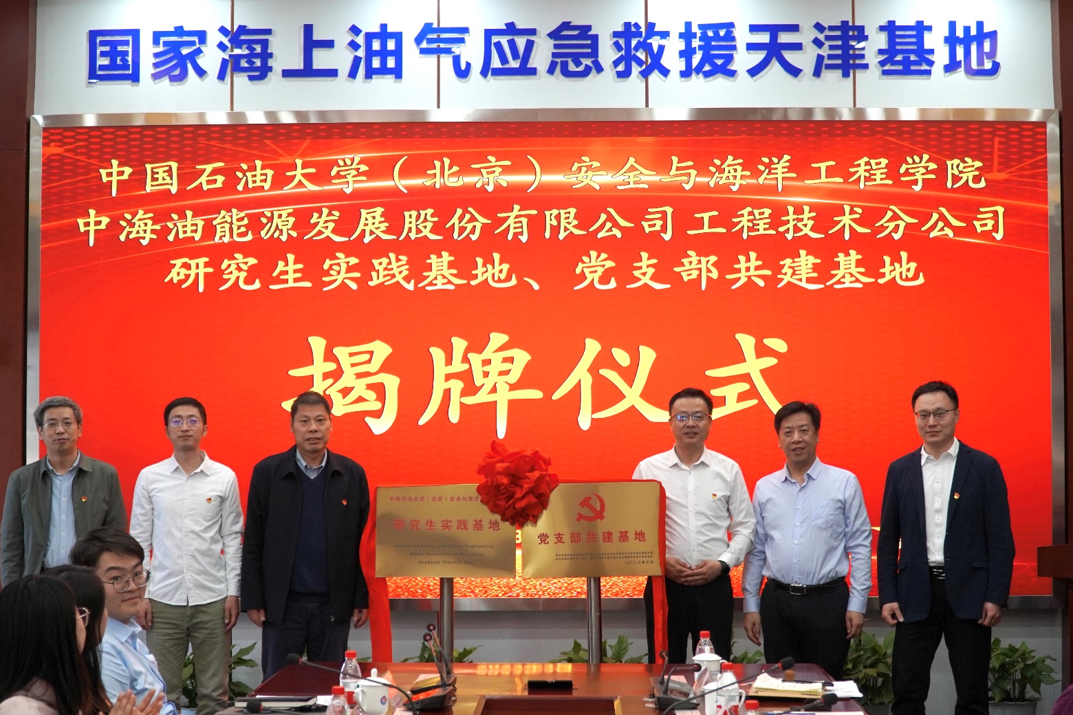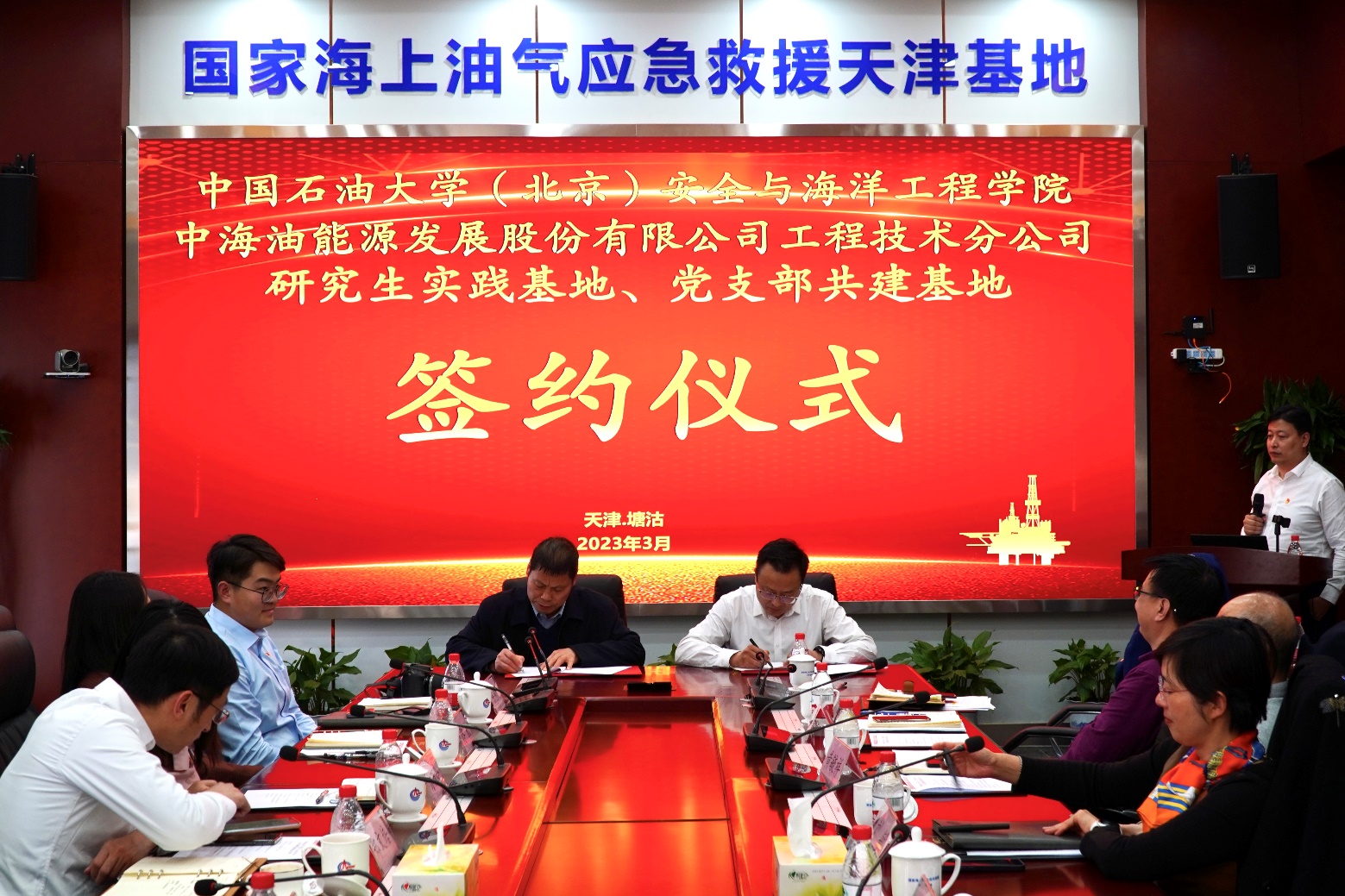 随后,双方签订了校企党支部结对共建协议及研究生实践培养协议。安全与海洋工程学院副院长杨进、郑文培,机械与储运工程学院副院长刘书海共同为井控中心与安全学院实习实践基地揭牌。