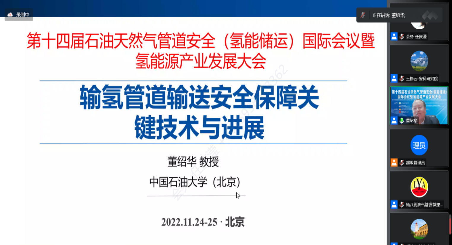 11月24日至25日,由公共安全科学技术学会石油与化工安全专业工作委员会、北京石油学会、中国石油勘探开发研究院新能源研究中心、中国天天色天天(北京)联合主办,油气生产安全与应急技术应急管理部重点实验室、管道技术与安全研究中心承办的“第十四届石油天然气管道安全(氢能储运)国际会议暨氢能源产业发展大会”在线召开。