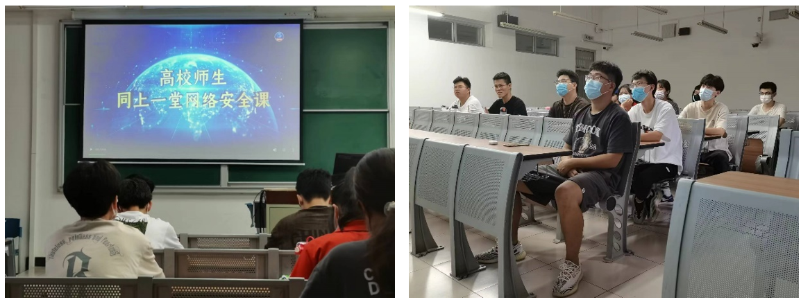 安全学院组织动员广大团支部、党支部、学生组织及学生社团登录中国大学生在线官网、快手、B站等平台观看“高校师生同上一堂网络安全课”,采用线上自学、线下集中学相结合的方式开展,从学生网络安全意识、个人信息保护、防范电信诈骗等维度进行系列学习。