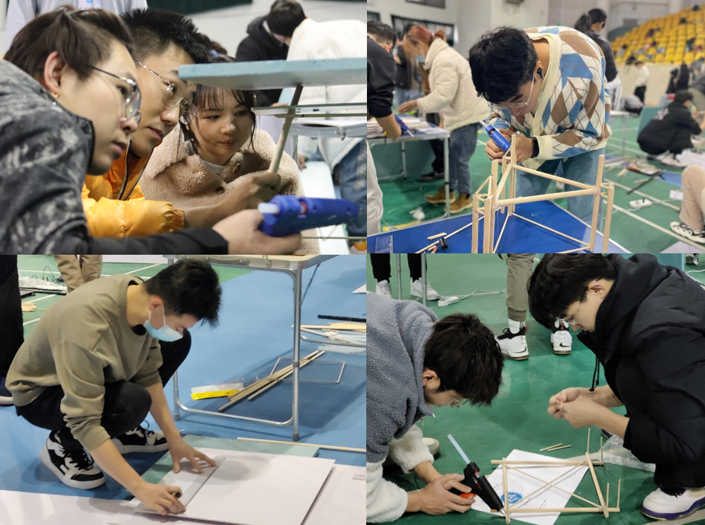 11月21日上午,大赛模型制作环节在体育馆顺利开展。各组选手分工明确,按照各组的设计理念,打磨导管架部件并组装好自己的模型,充分展现了各位选手所掌握的专业知识。制作环节完毕后,评委带领工作人员对各队模型进行载荷测试,测得沙土下沉距离、前后倾角等数据,针对测试模型的稳定性、承载能力和实用性等方面进行科学考量。