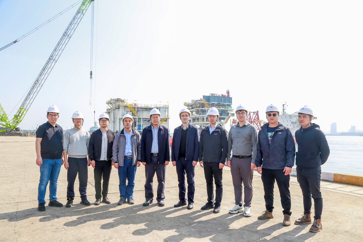 2023年2月18日我院杨进教授带队走访了中海油湛江分公司,在湛江期间,湛江分公司的赵宝祥带领杨进教授一行参观了湛江码头的干湿采油树、钻杆检测装置,介绍了钻井隔水管以及密封措施,参观了滑移装船的导管架平台等。