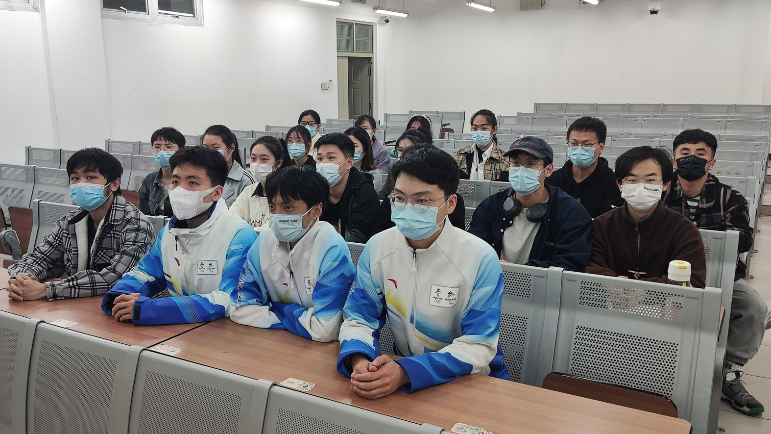 首先,来自本安全第一党支部的于龙、沈明雨、马明雨三位冬奥志愿者开展了冬奥故事分享。