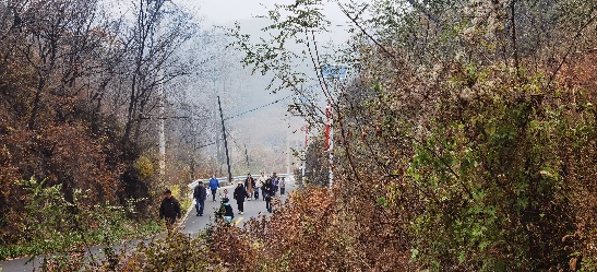 金秋季节的玉渡山,红的、黄的、绿的点缀在山坡上,色彩斑斓,加上雾蒙蒙的天气给人一种世外桃源,人间仙境的感觉,清澈的泉水蜿蜒流淌在山涧,老师们置身于水墨画间,在清脆的鸟鸣中,沿着湖边的小径,三五成群漫步在山水之间,时而驻足共赏景致,时而低声交谈,一路充满欢声笑语,让人心情放松,身心舒畅。