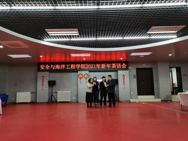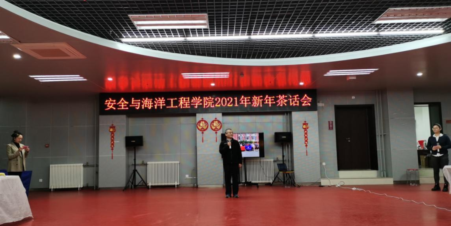 12月25日中午,安全与海洋工程学院在教职工活动中心开展2021年新年茶话会活动。院领导和全体教职工齐聚一堂,一起喜迎新春。