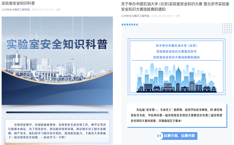 形 式:利用学院电子大屏、学院公众号等,发布实验室安全知识相关内容。