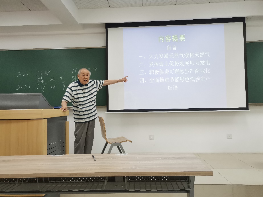 方华灿以“我国海洋油气能源转型的展望”为题,秉承理工结合、交叉创新、领跑前沿、科技报国的研究理念,深入分析了大力发展天然气液化天然气、发挥海上优势发展风力发电、积极促进可燃冰生产商业化以及全面推进节能绿色低碳生产等方面的问题,讲座中运用现场实际生产资料和工程图片,充分阐述了“十四五”海洋能源发展遵循的理念、产业布局与“双碳”目标。方华灿鼓励青年学子要树立远大理想,把个人的志向和祖国、民族、人民的命运相结合,他相信中石大学子一定会为海洋能源的转型、绿色低碳发展,“十四五”目标的实现立新功、创辉煌!