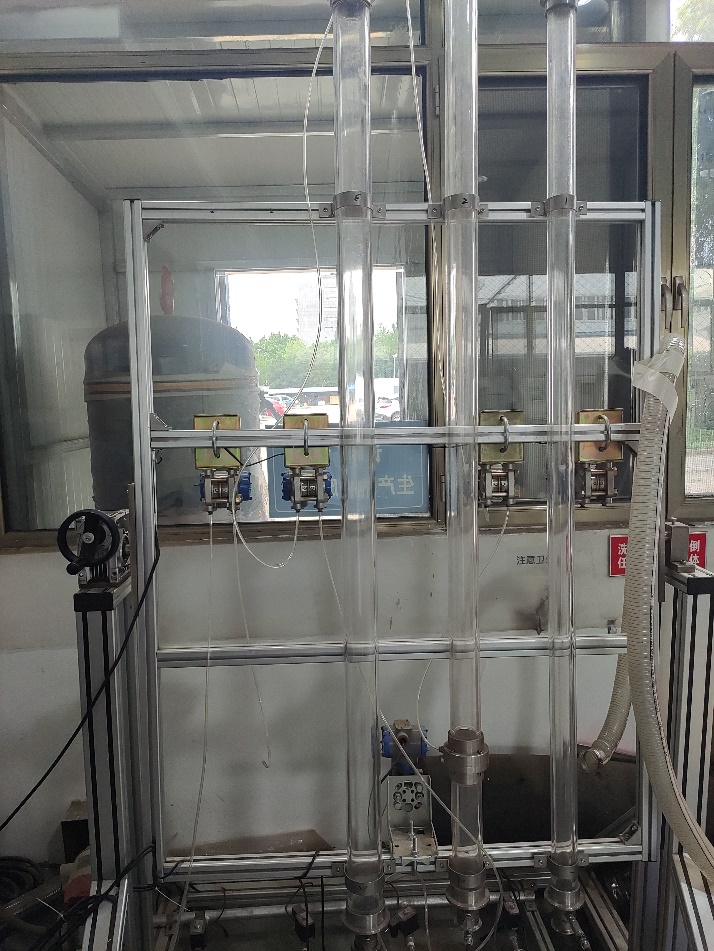 可提供的实验条件: 直井以及各种角度的斜井在定液压情况下,不同气体压力下的井筒内流形观测,井筒上下压差,井下压力;以及带气嘴的井筒内流形模拟实验。