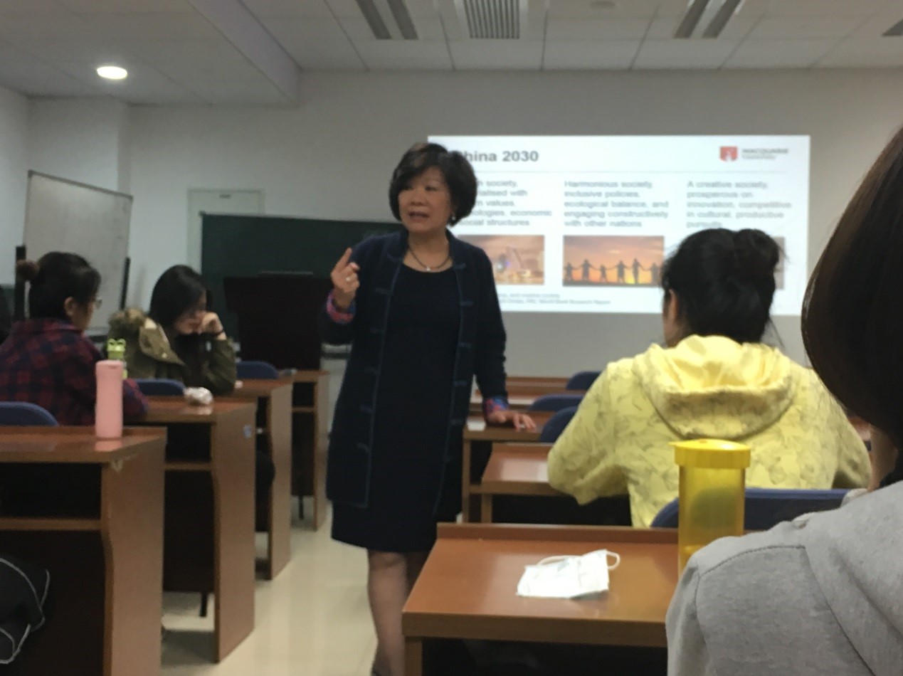 会谈后,Philomena Leung教授为我校会计专业学生开展了一次题为“新时代背景下的会计专业(Accounting in New Epoch)”的学术讲座。Philomena Leung教授以“创新”为契机,对当前社会上流行的新产品、新理念和新工艺等展开讨论,深入分析了创新型企业及产品的发展历程,同时引入竞争的观念,提出了持续性创新的重要性和必要性。讲座最后,Philomena Leung教授总结到,在新时代下,会计专业的教育必须与创新整合,会计需要通过数据分析、信息系统技术等手段和工具从而对社会创造新的价值;同时,Philomena Leung教授也提出了对会计从业人员道德准则的更高要求:Accounting is about accountability!