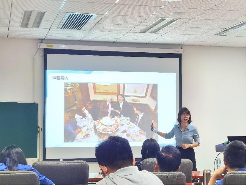 吕慧展示的课程题目为《企业合并中商誉的会计处理》,以电影《西虹市首富》片段为导入,引出天神娱乐公司的商誉减值案例,结合黑板板书,以生动的语言讲解商誉的定义、形成原因、计量、减值原因以及存在的风险等内容,兼具专业性和故事性。