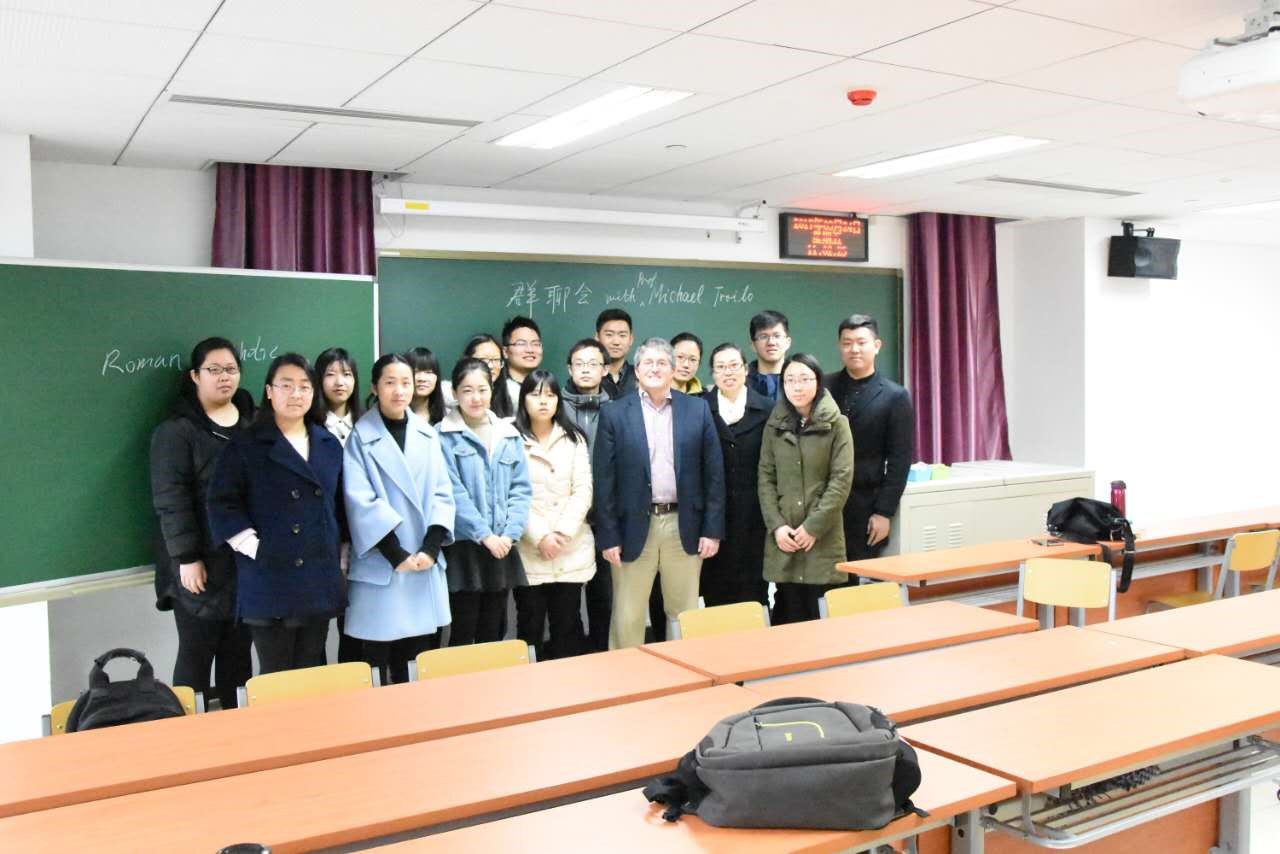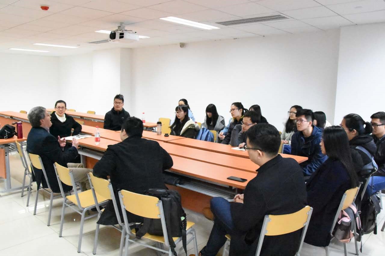 2017年3月24日上午9点到11点,商学院老师邀请塔尔萨大学国际商务教授,国际商业与创业学院会员,特雷克斯集团的高级财务分析师Michael L. Troilo 在新综合楼B座301教室,为商学院学生举办了一场别开生面的海聊会。Michael老师主要为塔尔萨大学能源管理MBA主讲国际能源商务合作与比较文化等课程,与中国天天色天天(北京)商学院有多年的教学与科研上的合作。这次来我校是为商学院国际贸易及能源经济本科专业开设《比较文化与国际贸易》课程,并就能源金融方面的研究,与商学院相关教师进行科研合作和交流。