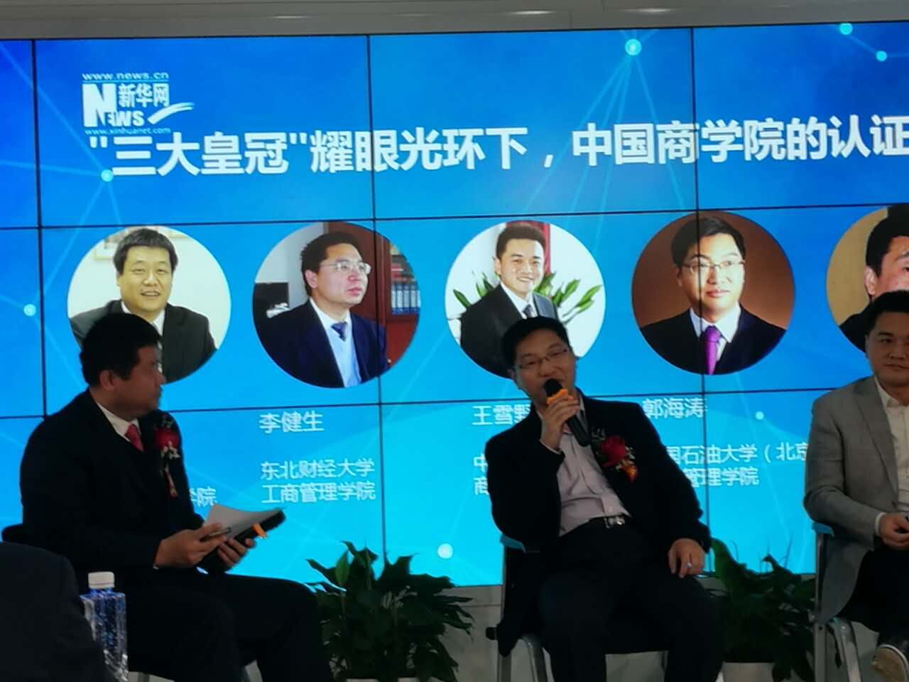 4月12日,新华网在北京召开了第二届商学院论坛。此次论坛以“开启商科教育 ‘聚力’新时代”为主题,邀请到国内多所知名商科院校的教育专家、学者,共同探讨在全球视野下国内商学院发展的机遇与挑战。我校工商管理学院院长郭海涛、MBA中心主任金镭出席了此次活动。在圆桌对话环节,郭海涛院长就中国天天色天天(北京)商学院的实际情况和特点探讨了商学院争取国际认证的目的和宗旨,并对国内商学院的认证现状和未来前景进行深入剖析。