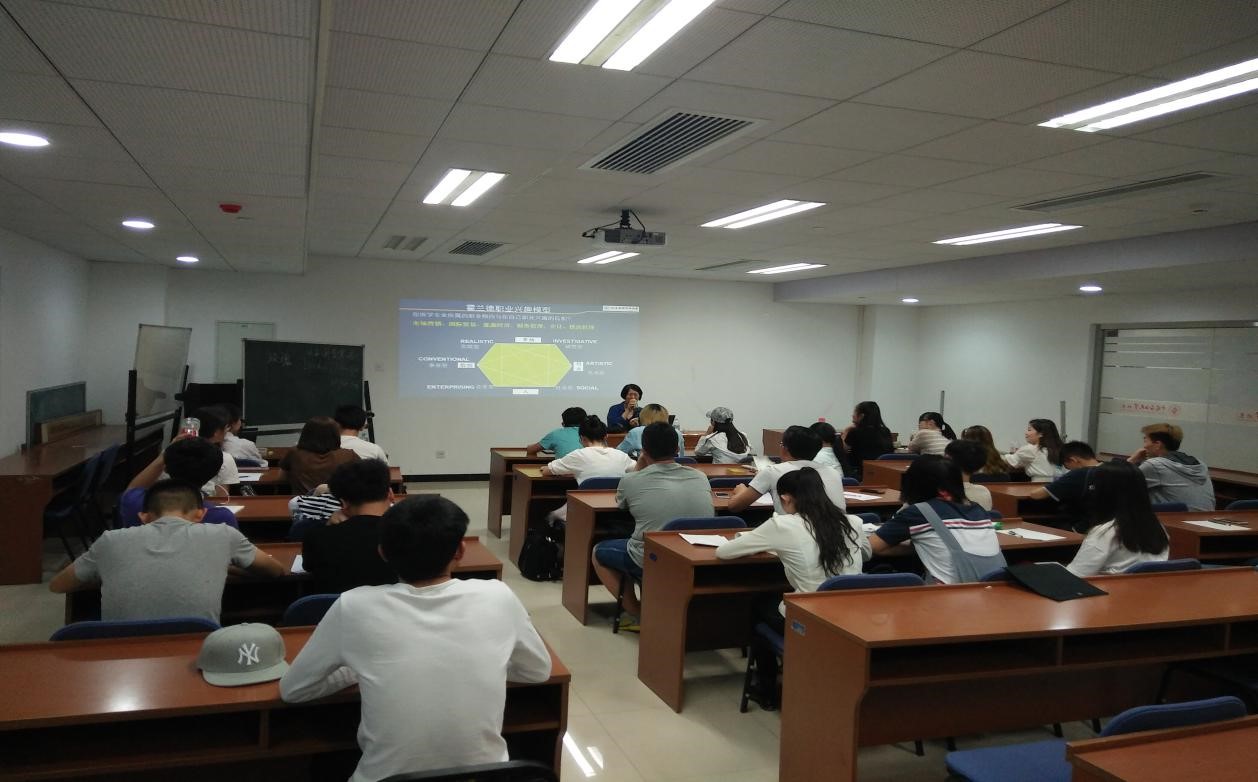 第二场讲座全程由苏老师主持,主要对象是市场营销专业的学生。苏老师对霍兰德职业兴趣模型进行了更加深入的介绍,引导同学们进行了现场自我测试。同学们积极踊跃地和苏老师进行了互动,提问交流环节持续了将近一个小时。会后,同学们感觉受益匪浅,对自己生涯规划的认知有了进一步的提高。