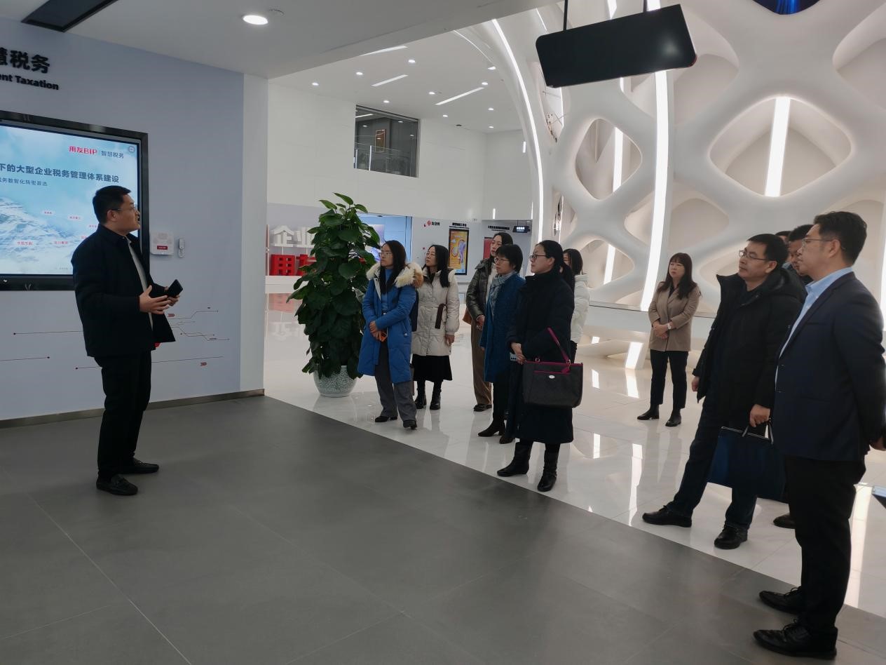 在用友公司领导与专家的带领下,学院领导和师生首先参观了解用友数智企业体验馆。通过参观,大家对数智化技术在企业中的应用有了更为直观和深入的了解,为后续的交流研讨奠定良好基础。学生们亲身体验数智化技术在财会领域的应用场景,拓宽了视野,激发了学习兴趣。