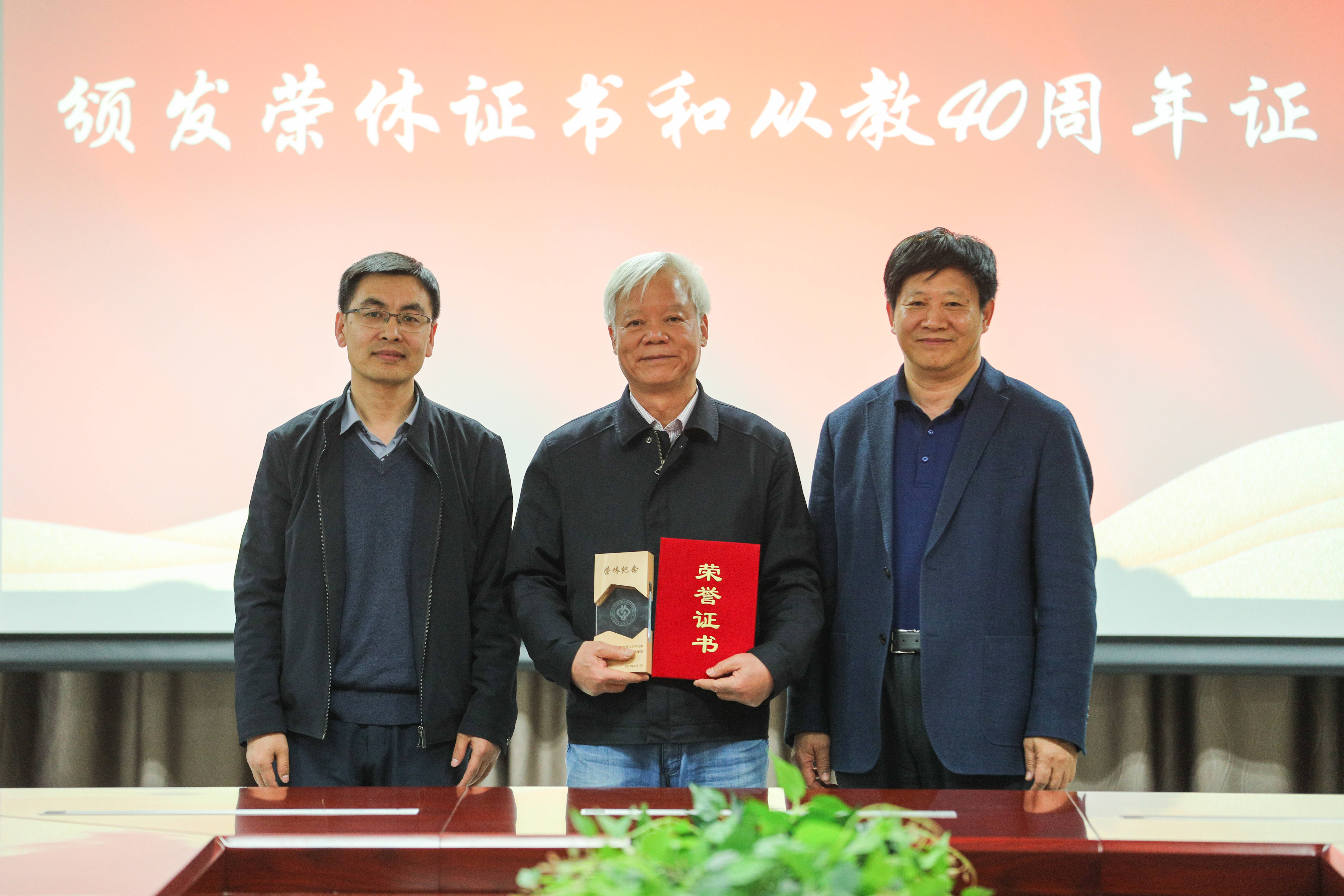 李根生副校长发表了热情洋溢的致辞,饱含深情地回顾了与罗东坤教授多年的交往历程,敬佩罗东坤教授四十年来切实做到“四心”,即对教学倾注良心,对学生满怀爱心,对科研专注专心,对工作倾情倾心,盛赞罗东坤教授是学生眼中名副其实的“四有”好老师,认为罗老师的率真、正直、大爱的气质是青年教师学习的榜样,并对罗东坤教授多年来心系学院,取得富有前瞻性的学术研究成果深表敬意。学院举办罗东坤教授的荣休仪式,对于进一步促进师道传承创新、营造尊师重教的氛围,为学院下一步的发展凝聚合力起到积极作用。