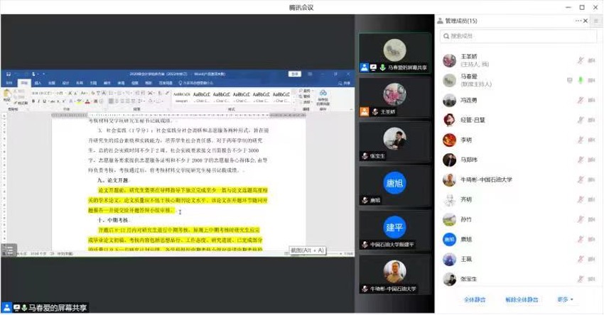 6月8日下午,经济管理学院于线上召开了2022年研究生培养方案修订研讨会。经济管理学院院长唐旭教授、研究生教育分管副院长马春爱教授、学院研究生教育督导组专家、二级学科负责人及专硕项目负责人参加了此次会议。