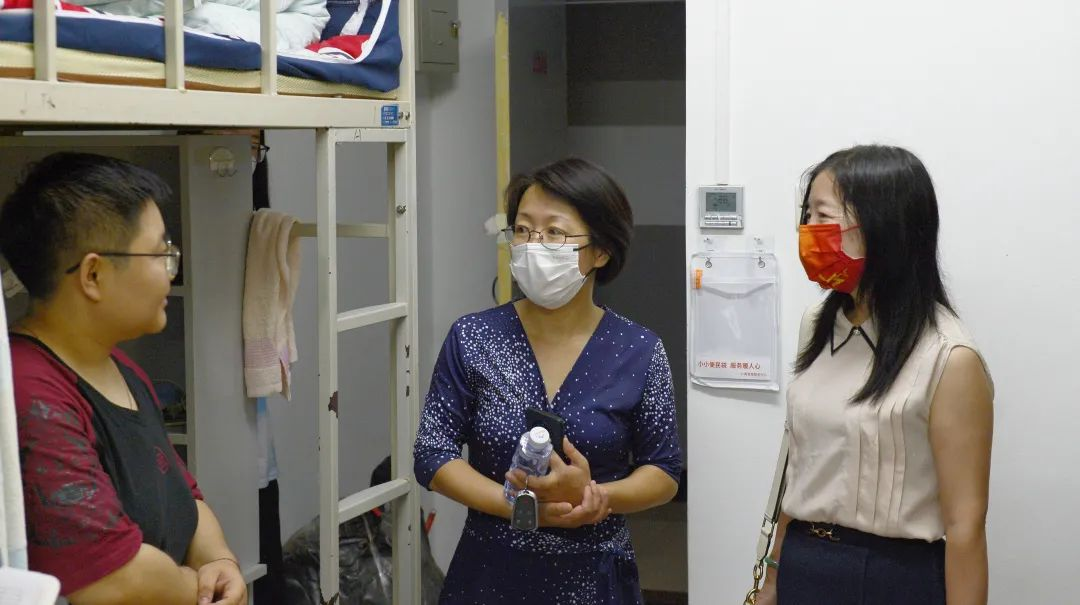 走访过程中,朱义清书记嘱咐同学们在疫情防控期间要时刻注意遵守学校规定,遇到问题要及时同辅导员沟通,为自己和全校师生同学负责。唐旭院长勉励同学们要关注时事政治和经济,努力学习,同时要多进行体育锻炼,强健体魄,不断提高自身综合素质和能力。马春爱副院长详细查看了住宿环境及宿舍各种设备,鼓励大家要相互包容、共同学习,鼓励同学们多与老师联系。赵晓丽副院长询问了同学们对学校的适应情况,希望同学们能够德智体美劳全面发展。