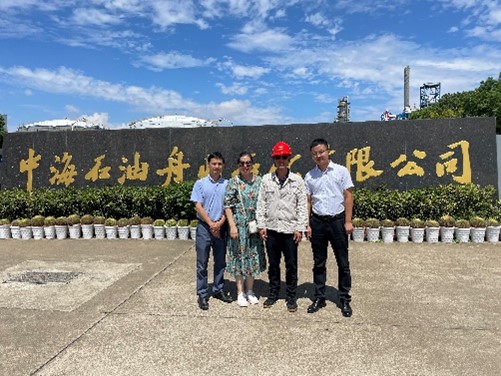 此外,孙竹教授一行参观了中海石油舟山石化有限公司,与总经理赵培江进行了座谈。会上,孙竹教授介绍了我校能源金融学科建设和学生培养,以及政产学研合作情况,听取了中海石油舟山石化关于能源化工产品的生产、销售、市场的经验介绍,并向中海油长期以来对我校金融系的大力支持表示感谢,希望双方继续加强合作交流,推动产学研的共同发展。