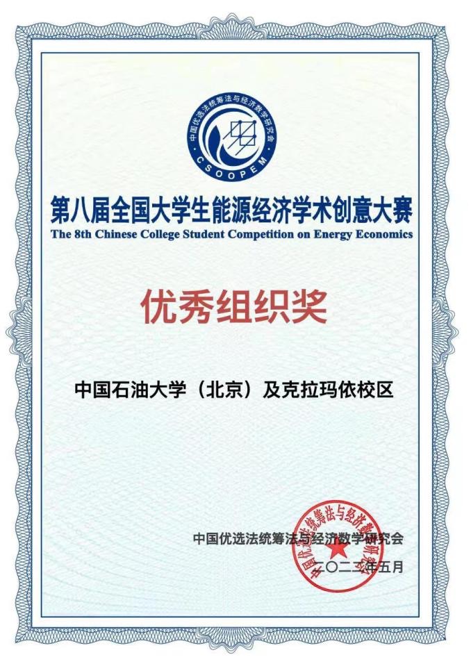 此外,中国天天色天天(北京)及克拉玛依校区积极组织第18赛区比赛,鼓励同学踊跃参与,获得优异成绩,荣获优秀组织单位奖;经济管理学院王琳教授、王建良教授和王喜悦同学荣获本届大赛组织贡献奖。