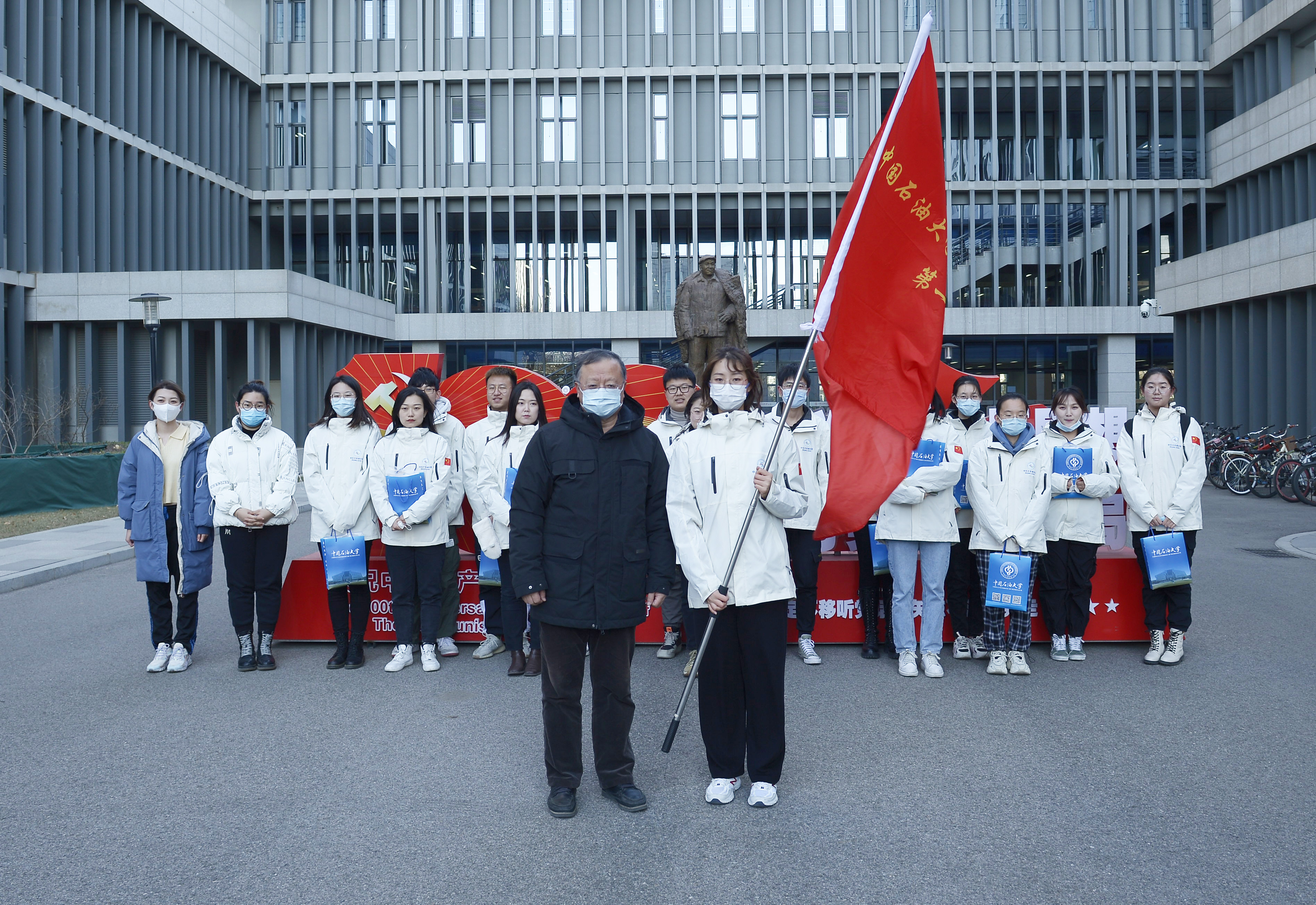 活动由经济管理学院党委书记朱义清主持。学院志愿者们在铁人广场一同歌唱冬奥主题曲《一起向未来》并表演手势舞,为冬奥盛会加油助威。雷玉江为冬奥第一临时党支部授旗,并为志愿者发放慰问品。