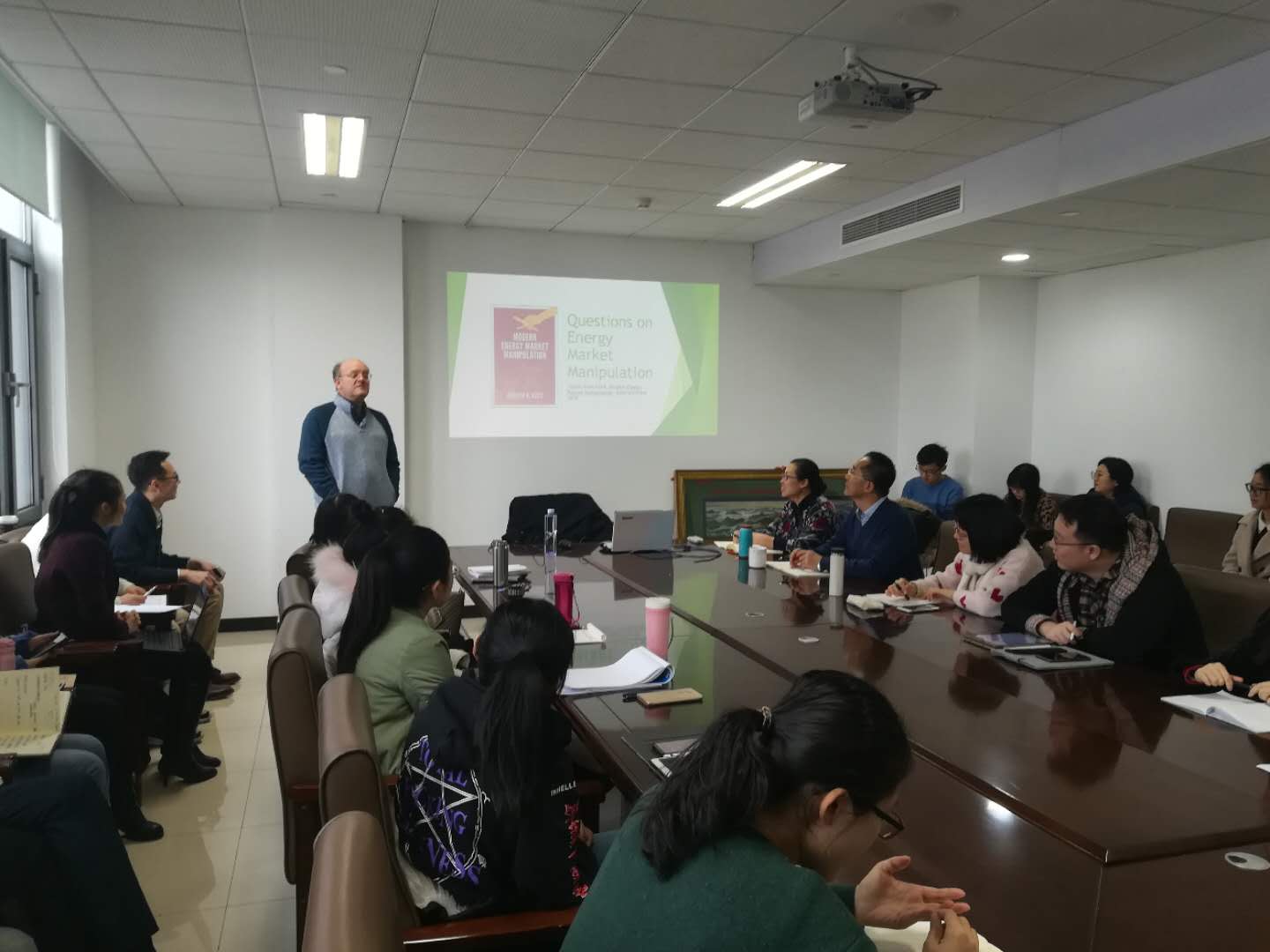 研讨会上,Andrew 教授对能源商务与金融项目作介绍,并围绕能源、金融、政策与政府作用等话题与老师同学们进行了广泛的探讨。他认为能源经济学、商品市场学、油气市场学与公司金融等能源经济、金融相关课程对于能源经济专业的学生很重要。Andrew 教授表示,石油工程、计算机语言、地理信息系统等辅修课程同样是能源经济领域所需要的。
