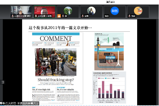 王老师就页岩气开发环境影响的相关研究的过程与大家进行了分享,诸如论文和基金的选题、关键问题的思考、研究框架设计、数据搜寻技巧等。他着重讲述了自己为何会关注页岩气开发的环境问题、选题时如何另辟蹊径,以及自留校任教以来如何围绕这一问题快速地展开系列研究并形成成果,将自己的学术成长之路娓娓道来。在线师生与王建良老师就讲座内容等进行了广泛的交流和讨论,现场气氛十分热烈,在线师生深受王老师对科研追求的持之以恒精神的鼓舞和启发,也更加坚定了做学术的自信和信念。