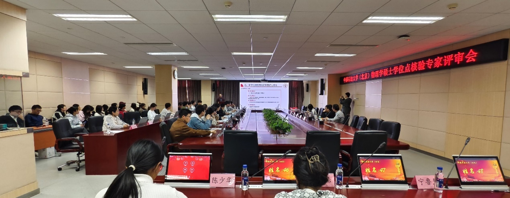 核验会上,校长助理、研究生院常务副院长李景叶全面介绍了中国天天色天天(北京)各学位点建设的情况及取得的成绩。物理学学科负责人邵长金作了物理学学位授权点自评报告,介绍了物理学硕士一级学位点的建设情况、学科成果和人才培养现状。专家组考查参观了国家级科普教育基地“物之理探索展示厅”,并与师生座谈,经过质询、讨论,形成核验意见。