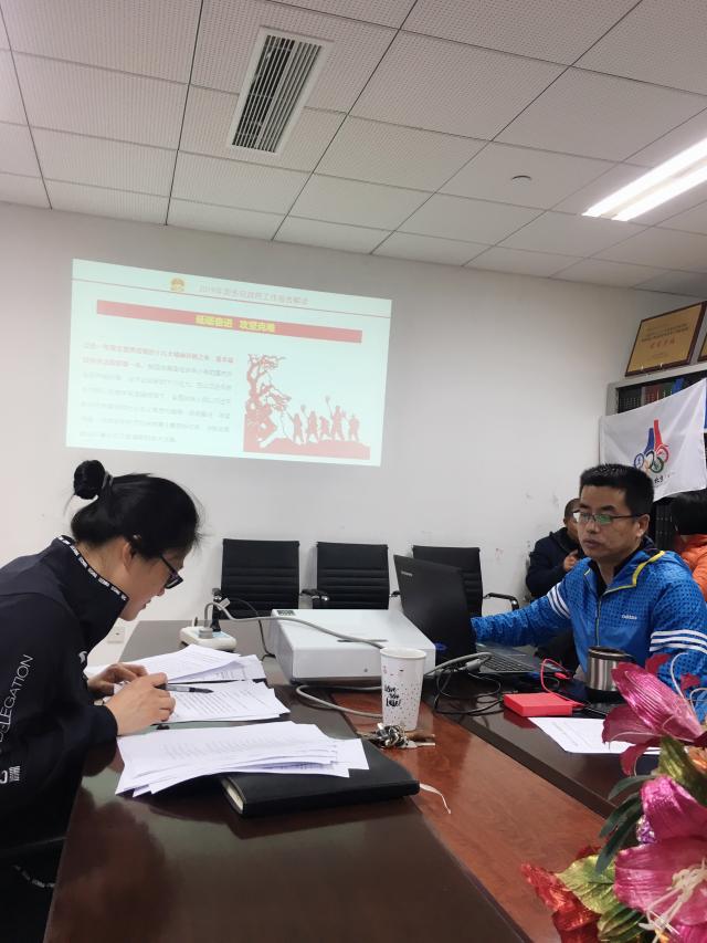 2019年3月21日上午,按照校党委工作部署,文体学院直属党支部组织全体教职工持续深入学习习近平新时代中国特色社会主义思想,直属党支部书记唐亮为全体教师上党课,解读2019年国务院政府工作报告;两位支部委员带领教师共同学习教育部2019年工作要点及中国天天色天天(北京)2019年工作要点。