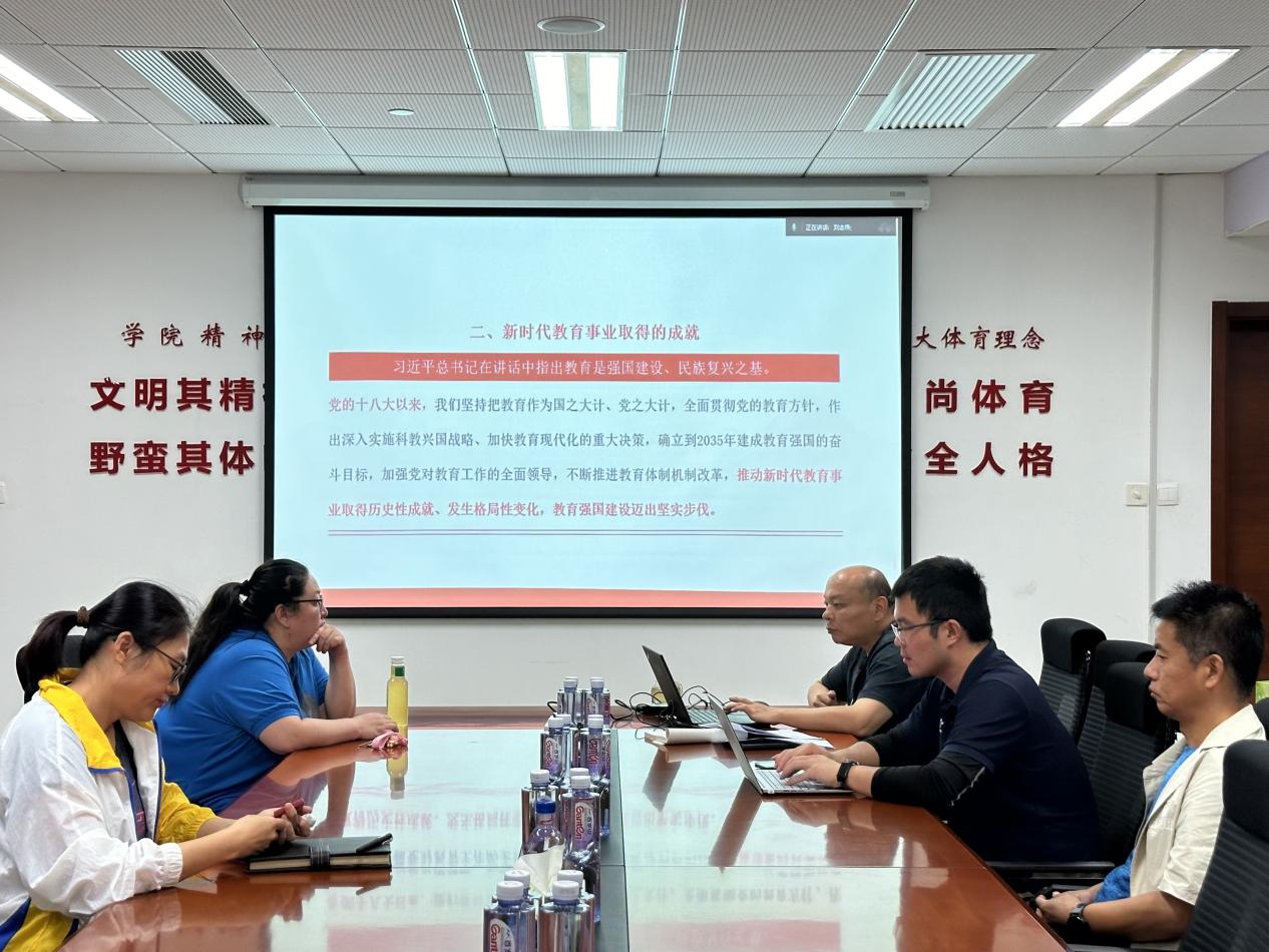 为深入学习宣传贯彻习近平总书记在全国教育大会上的重要讲话精神,落实学校《关于开展全国教育大会精神专题学习的通知》要求,2024年9月24日中午,学院在主楼A922会议室召开了全国教育大会精神专题学习会。会议由张珣书记主持,学院全体教师参加学习。
