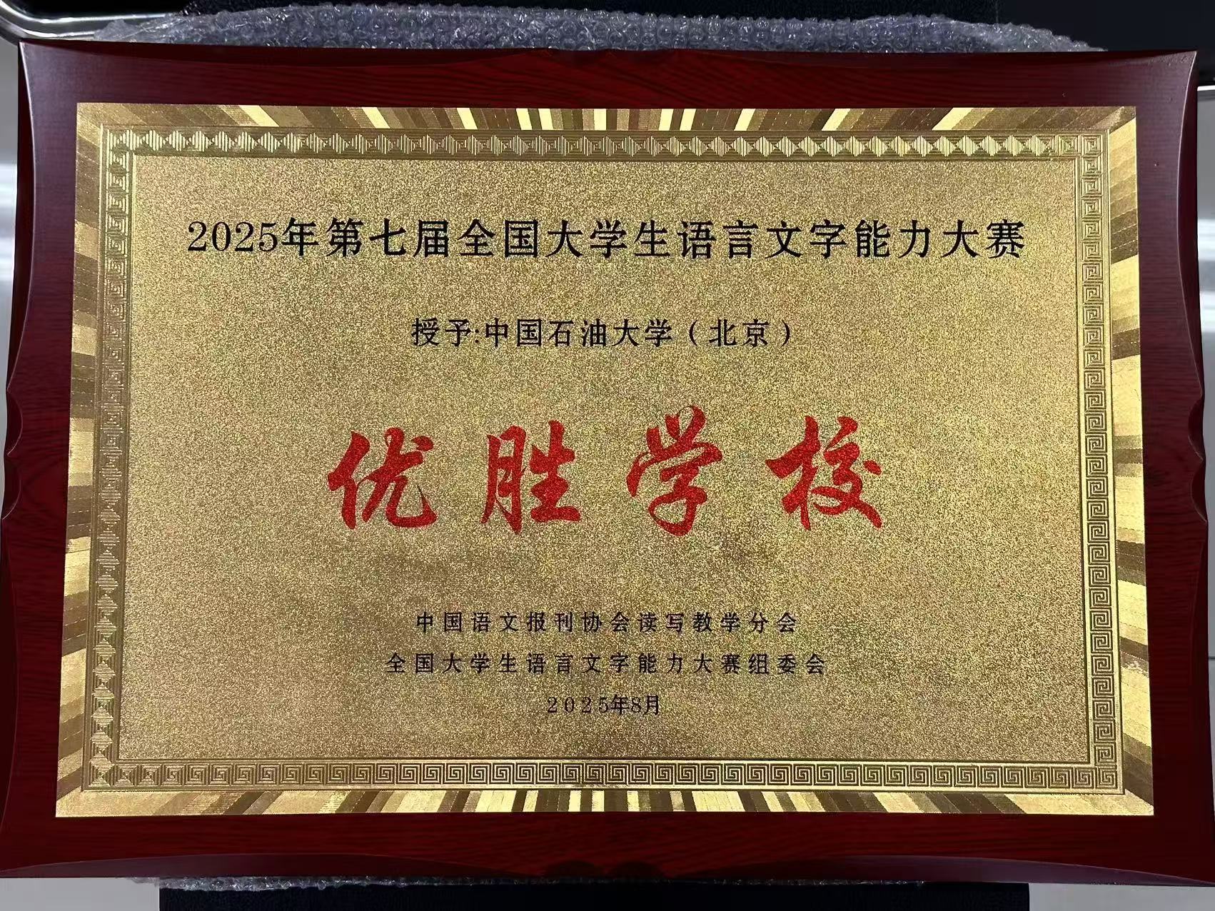 中石大获全国大学生语言文字能力大赛“优胜学校”称号