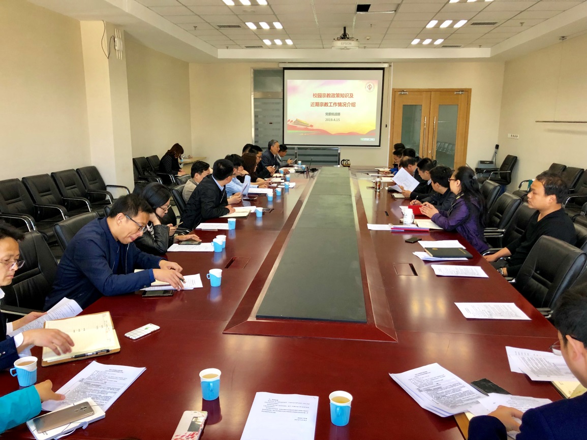 为深入学习了解新形势下党的宗教工作方针政策,做好抵御和防范校园宗教渗透工作,4月30日上午,党委统战部在学生活动中心413会议室对学生工作部门负责同志和各学院(研究院)学生工作负责人进行了宗教工作专题培训,会上,党委统战部常务副部长赵庆海做题为《校园宗教政策知识及近期宗教工作情况介绍》报告。