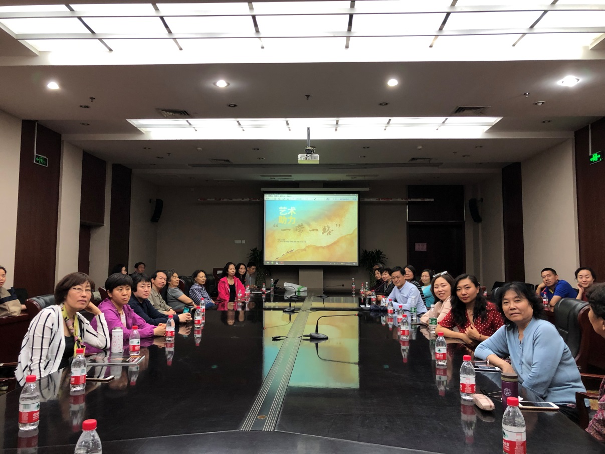 在现场领略到丝路文化艺术魅力的同时,社员们又倾听了由中国文化传媒集团《艺术市场》杂志主编续鸿明先生带来的以“艺术助力一带一路”为主题的精彩讲座。进一步深入了解华夏民族与周边民族长期的交流与互鉴的历史,体会到壁画图像中如“胡人”、“胡物”等很多外来元素就是文化交流的印证。