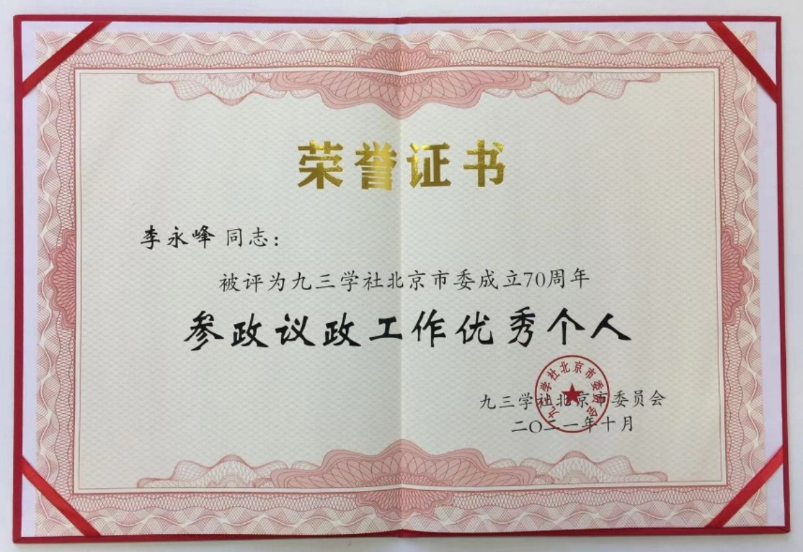 10月13日,庆祝九三学社北京市委成立70周年大会在京召开,全国政协副主席、九三学社中央常务副主席邵鸿出席并讲话。会上对九三学社北京市委会成立70周年先进集体和优秀个人、抗击新冠肺炎疫情先进集体和个人进行了表彰。中石大教师张万松被评为“优秀社务干部 ”,李永峰被评为“参政议政工作优秀个人”。