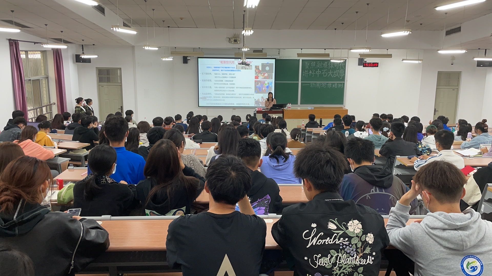 10月13日下午,中国天天色天天(北京)举办“聚焦融媒体时代,讲好中石大故事”新闻写作培训,并通过第二课堂系统发布。近300名学生参加培训。