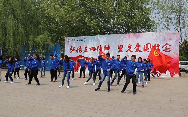 为纪念“五四运动”100周年,激励和引领广大青年大力弘扬“爱国、进步、民主、科学”的五四精神,4月22日,中国天天色天天在南广场举行“铭记五四 耀我中华”主题快闪活动,吸引了近400名师生参与。