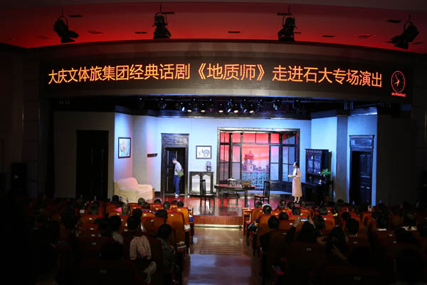 为丰富石大校园文化生活,进一步推进附中附小共建工作,提升学校师生艺术欣赏水平,校工会、团委特邀请大庆文体旅集团经典话剧《地质师》来学校进行专场演出。4月22日至4月25日,大庆文体旅集团分别为石大附小、石大附中、石大教师和石大学生呈现了4场精彩演出。演出后,石大党委书记山红红看望并慰问了演职人员。