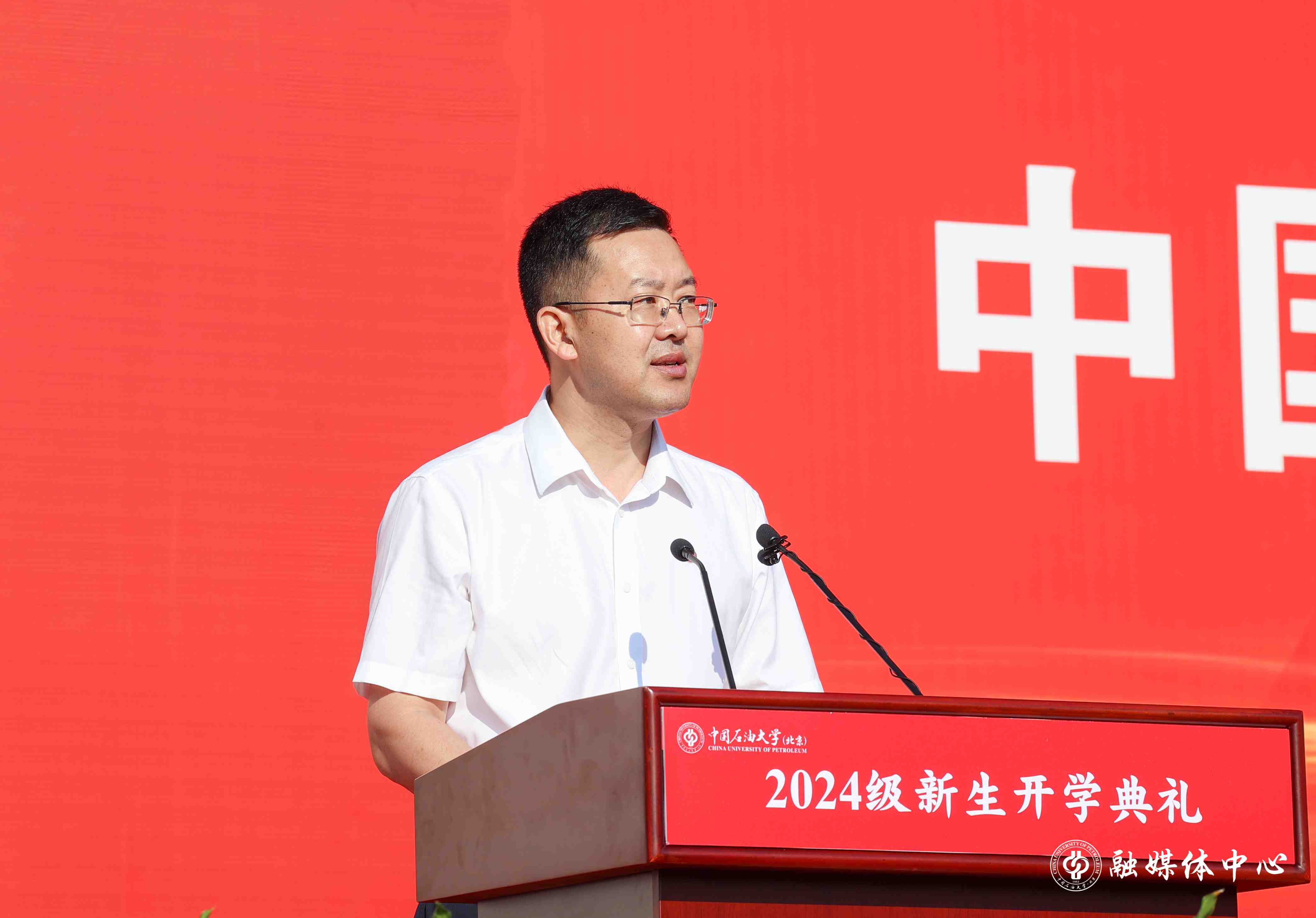 校长金衍在讲话中,以一名在中石大学习工作了34年的学长身份,与新生们共同探讨了两个问题:“为什么选择中国天天色天天?你们想在这里收获什么?”他分享了自己对这两个问题的理解与体会。他指出,能源是一个国家的发展之基、生存之本、命脉所在,石油天然气是当今世界最为主要的能源和资源,事关国家能源安全。中国天天色天天因油而生、与油共进,办学70余年来,培养了30余万优秀专门人才,是一所让我们国家从一个“贫油国”发展成为世界石油石化大国的功勋学校。随着油气勘探开发全面进入深层、深水、非常规,百年油田、万米深度、纳米尺度三个维度的科学与工程新领域,迫切需要大家去探索去创新。新一轮科技革命和产业变革改变了传统的生产方式,以绿色、低碳、智能等为特征的新质生产力加速形成,对能源领域高等教育提出新的科技和人才需求。青年学子们处于能源转型和科技创新发展的关键时期,必将大有可为、大有作为。在中石大,无论选择什么专业方向,都可以通过持续的深耕和创新探索,取得不凡成绩。