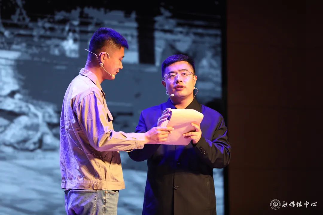 激昂的管弦乐合奏之后,来自各学院的青年师生以故事讲述、情景再现、音乐舞蹈短剧等形式,分享了青春奋斗的故事。