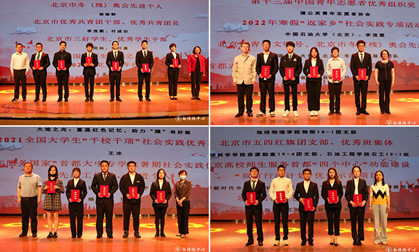 颁奖表彰环节,与会职能部门负责人分别为全国高校活力团支部,全国大学生“千校千项”社会实践优秀团队、优秀事迹,中国大学生自强之星,北京市冬(残)奥会先进集体、先进个人等24项荣誉获得者颁奖。