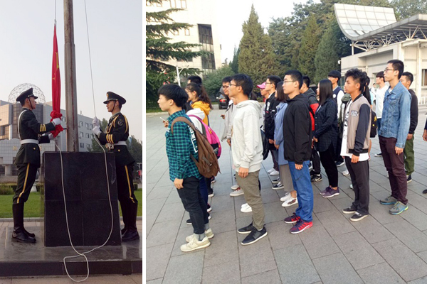 在庆祝新中国成立68周年之际,石大举行了国庆升旗仪式,近30名学生干部参加了升旗仪式。
