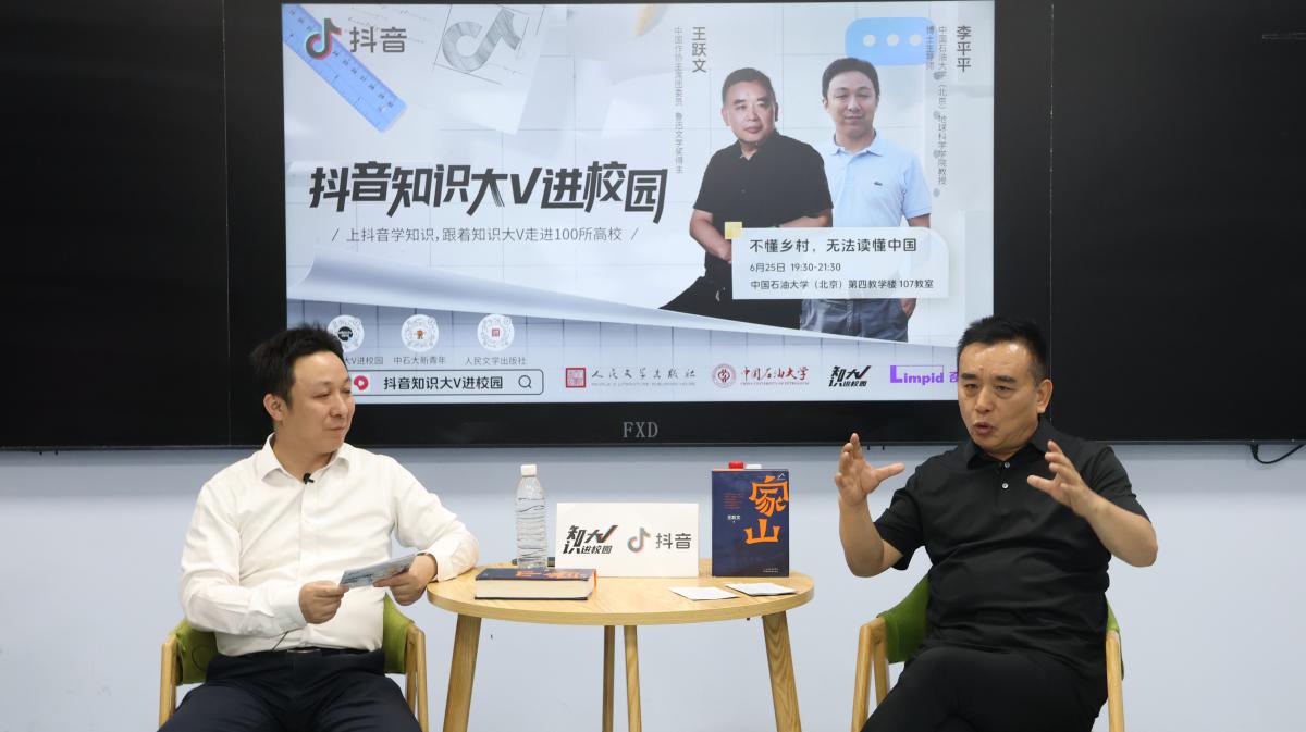 为推进书香校园建设,近日,中石大举办“抖音知识大V进校园”活动,中国作协主席团委员、鲁迅文学奖得主王跃文受邀走进学校开展“不懂乡村,无法读懂中国”专题分享活动,地球科学学院教授李平平受邀作为嘉宾进行跨界对谈。活动通过“抖音知识大V进校园”和“中石大新青年”官方抖音号进行同步直播。