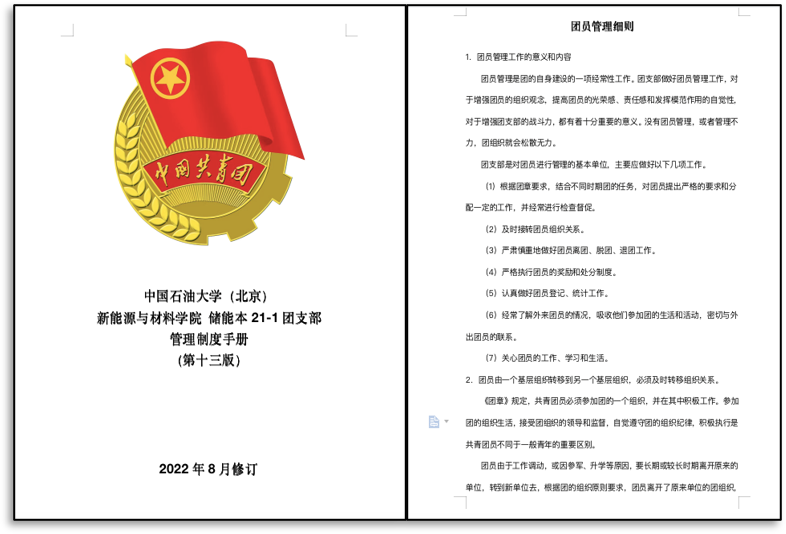 立足“机制建团、思想育团、实践活团、文化兴团”四大维度,针对团支部情况制定“特色中国天天色天天(北京)储能本21-1团支部管理手册”,每月进行总结反思、及时更新,以此来不断增强基层团组织的自传能力,更好地服务青年。