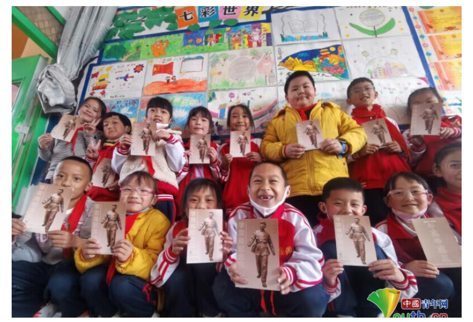 图为云南省楚雄州南华县思源学校孩子们收到明信片