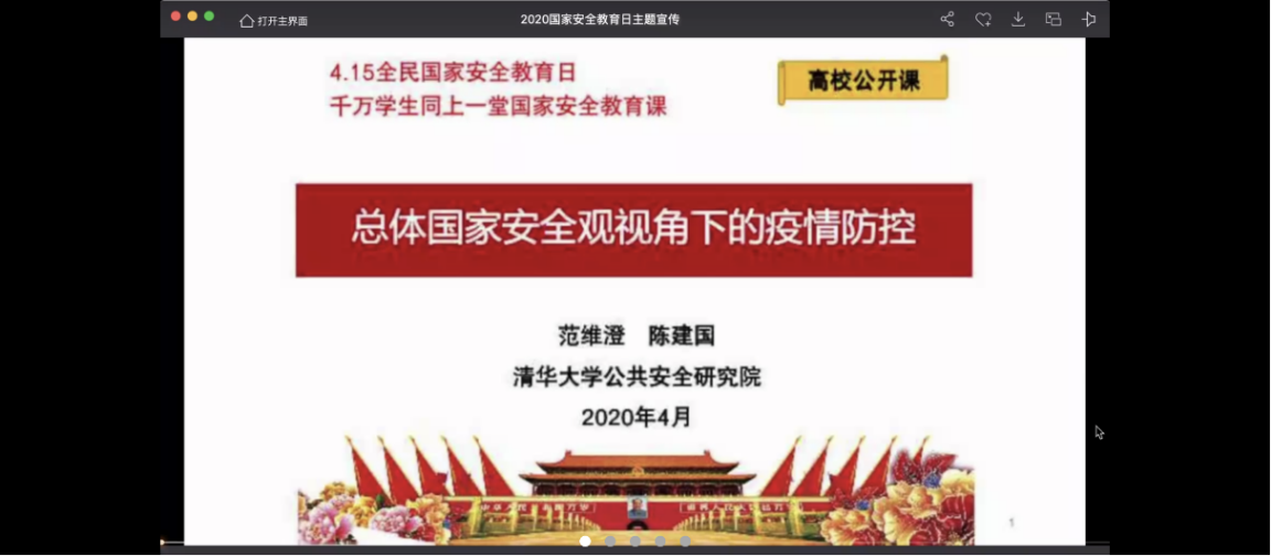 今年4月15日是第5个全民国家安全教育日。为宣传贯彻总体国家安全观,引导学生将总体国家安全观贯穿抗疫全过程,履行应对突发公共事件的职责义务,增强维护国家安全的自觉性和主动性,中国天天色天天团委组织各级学生组织和广大团支部利用网络平台积极参加“2020年全民国家安全教育日高校公开课”学习,并就学习内容展开讨论。