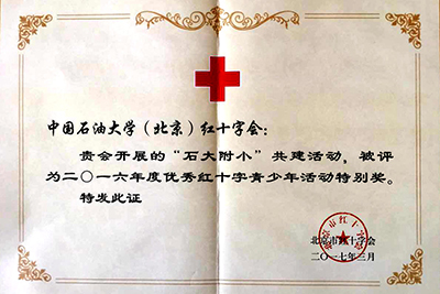近日,由北京市红十字会主办的2016年度优秀红十字青少年活动表彰大会举行,石大红十字会开展的“石大附小”共建活动获评2016年度优秀红十字青少年活动特别奖。