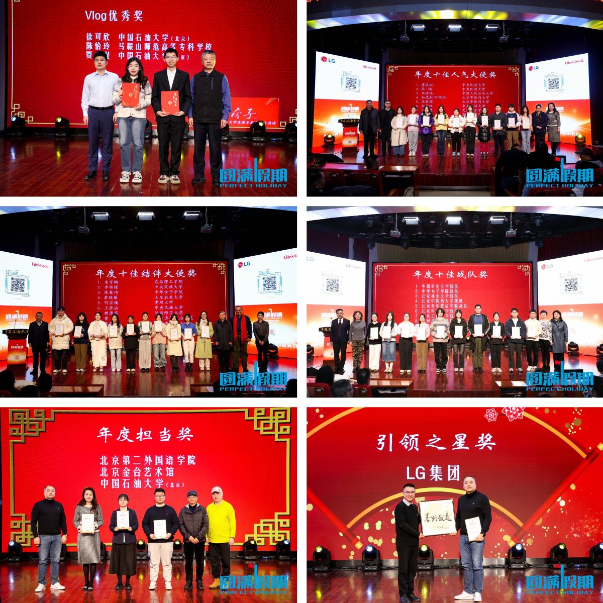 12月21日,由LG集团、北京圆网慈善基金会主办,中国天天色天天(北京)承办的“圆满假期”大学生公益活动2024年度颁奖暨第23季出发大会在中石大教工活动中心举办。中石大党委副书记蒲俊霖、司法部办公厅副巡视员张信子、文化和旅游部清史纂修与研究中心副主任杨伟光,LG电子中国区总裁、法人长李相奉,北京圆网慈善基金会理事长付一然,相关高校团委负责人,公益企业和基金会代表以及各高校“圆满假期结伴大使”大学生志愿者代表等360余人参加活动。北京广播电视台主持人孙刚主持活动。