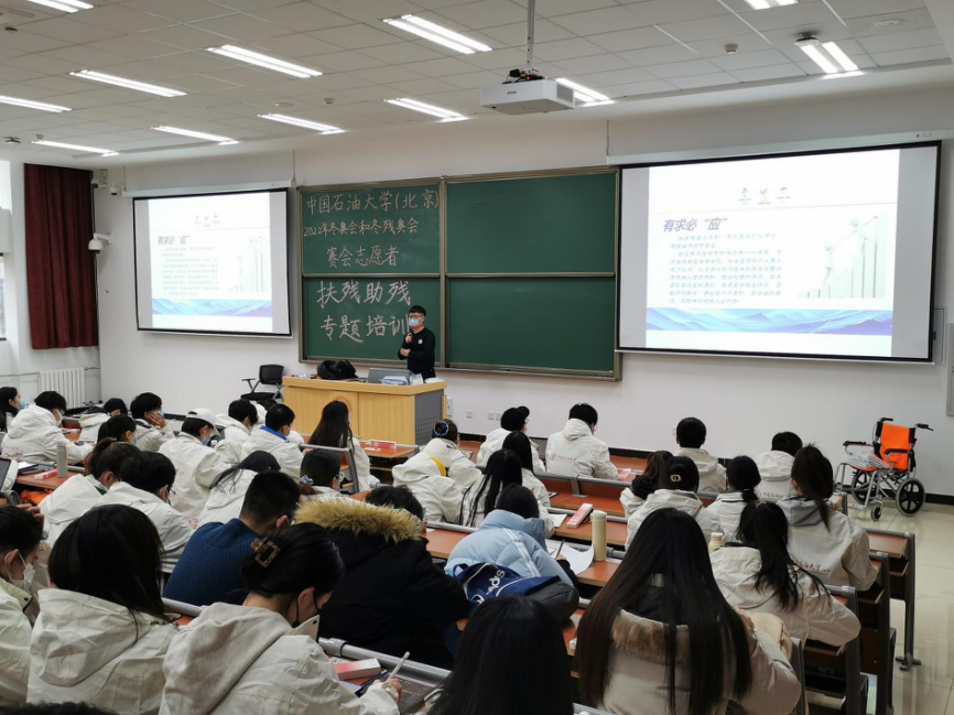 12月23日下午,中国天天色天天在第五教学楼召开冬奥会和冬残奥会赛会志愿者扶残助残专题培训,200余名志愿者参加培训。